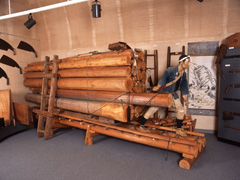 山から下ろした木材は、筏に組んで天竜川を流します。