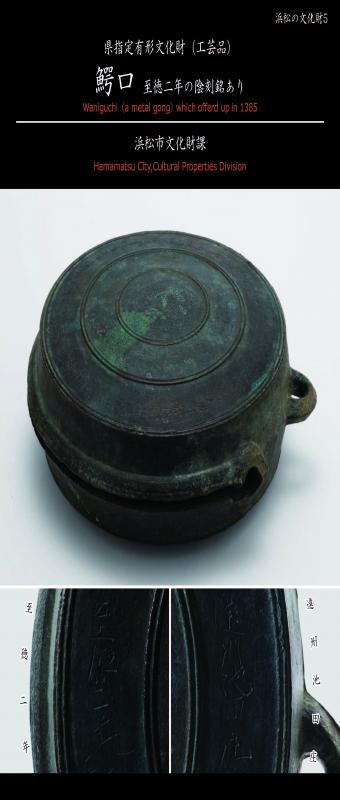パンフレット浜松の文化財5県指定有形文化財(工芸品)鰐口至徳二年の印刻銘あり(PDF:2,669KB)