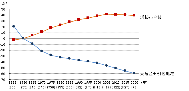| 【天竜区】 | 1960(S35) | 1975年(S50) | 1990年(H2) | 2005年(H17) | 2010年(H22) | 2015年(H27) | 2020年(R2) | ||||||