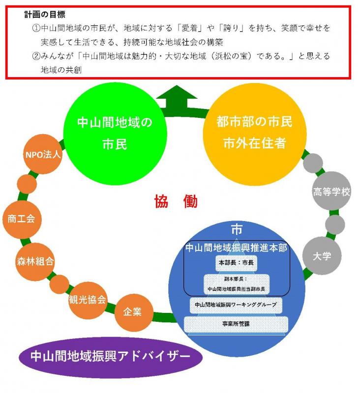 本計画の2つの目標の実現に向け、市内外の個人や各種団体、企業、行政など「みんな」が一丸となって、それぞれの果たすべき役割や課題を理解し協力し合い、地域振興や課題解決に取り組んでいくことが重要です。