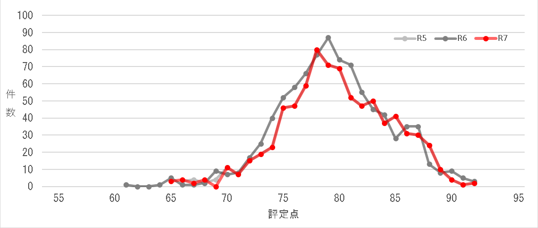 | 建築一式 | 53件 | 79.6点 | 61件 | 78.5点 | 55件 | 79.4点 |