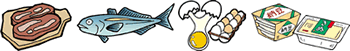 | 3 | Platos principales | Alimentos que ayuden a la formación del cuerpo, tales como pescado, carne, huevos, frijoles (frejoles), etc.![]() |