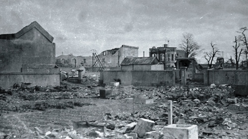焼け野原となった市の中心部。現在の板屋町、広小路を西へ入った浜松郵便局の北側あたり。