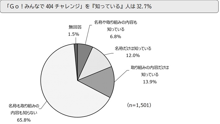 - 「名称や取り組みの内容も知っている」「名称だけは知っている」「取り組みの内容だけは知っている」を合わせた『知っている』は32.7%となり、「名称も取り組みの内容も知らない」の65.8%を33.1ポイント下回った。
