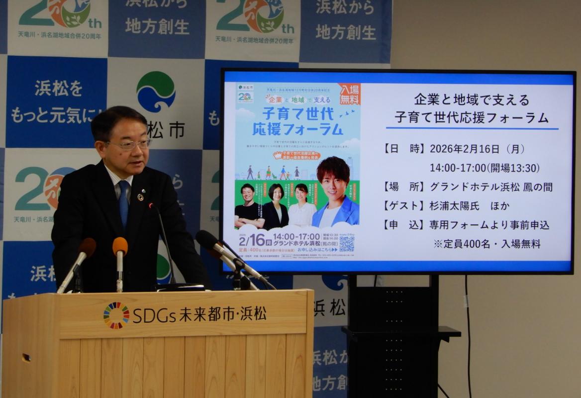 本フォーラムは、昨年3月に浜松経済同友会の皆さまからいただいたご提言の内容を踏まえ、社会全体で地域の未来を担う子供や子育て世代を応援していく趣旨のもので、本市として初めての開催となります。