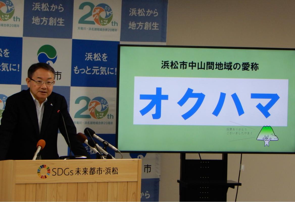 決定した愛称は「オクハマ」です。「オクハマ」は、中山間地域が浜松市の奥「オク」に位置していること、そして浜松市の「ハマ」を組み合わせた愛称となっています。