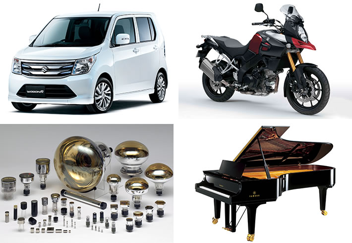 浜松市は、江戸時代より織物の産地として栄え、明治には楽器の生産が始まりました。近年では、楽器、自動車やオートバイ、光・電子産業など、グローバルに活躍する企業が数多く集まります。温暖な気候を生かした農林水産業においても世界的ブランドへの成長が期待されています。