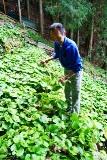 わさびは、1年半から2年近くの年月をかけ、栽培する。春に苗を植え、翌年秋に収穫することになるという。「石積みに近い、際に生えているものの出来がいいなあ。水が流れるから酸素もよく通る。だから根が張って立派になるんだ。肥料はやってないよ」もうすぐ収穫間近だ。大部分は市内や近隣の漬物屋に出荷するそうだ。加工品は作らないのか聞くと「この前、頼まれてわさび漬けを作った」茎はこう切って、塩は3%程度で、と望月家直伝の作り方を教えてくれた。水窪町内のスーパーや森林組合の売店に、数量が限られるが置いているという。なかなか手に入らないが好評だそうだ。